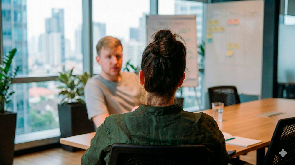 Treinamentos focados em entrevistas, reuniões e comunicação profissional para quem já sabe inglês e quer performar melhor quando mais importa.